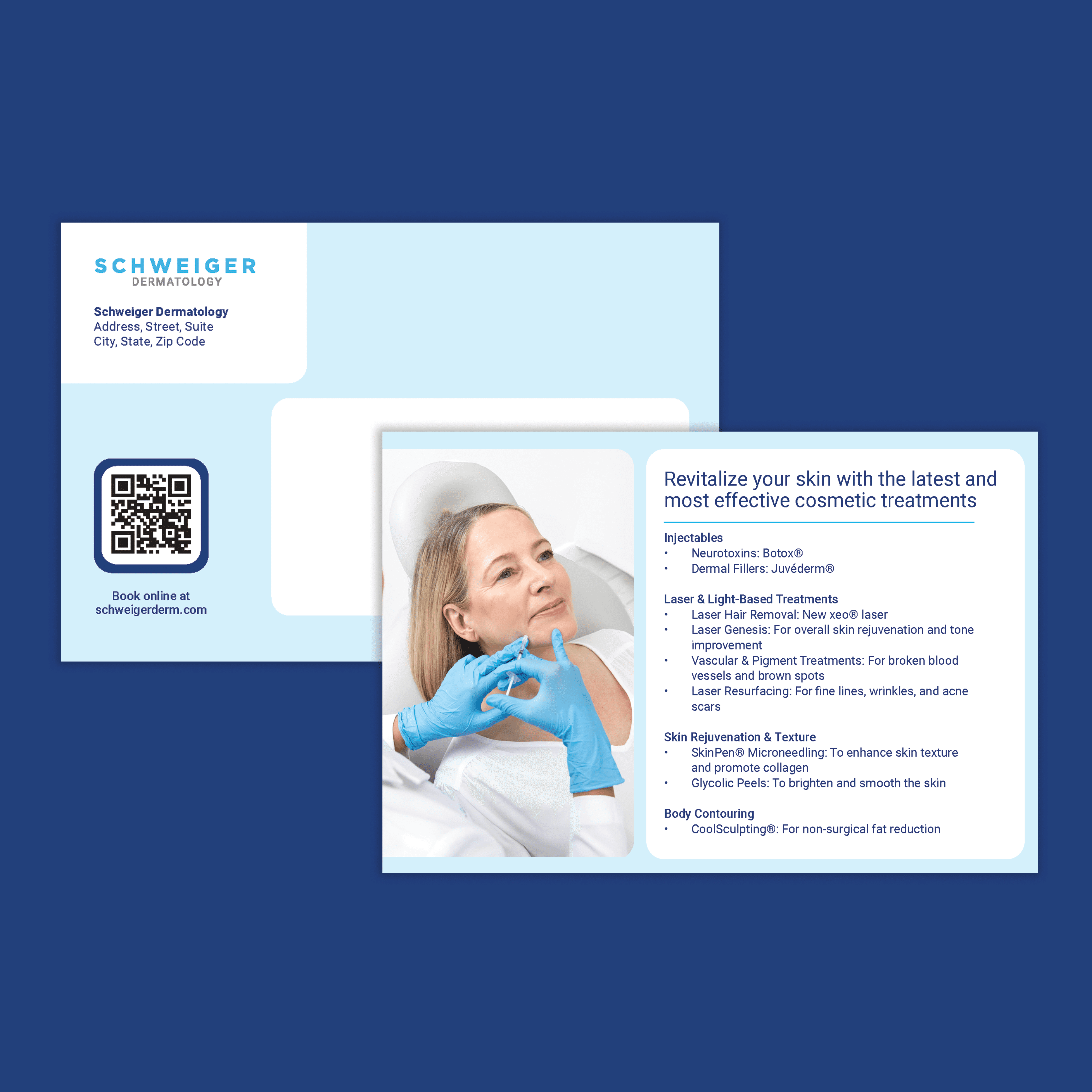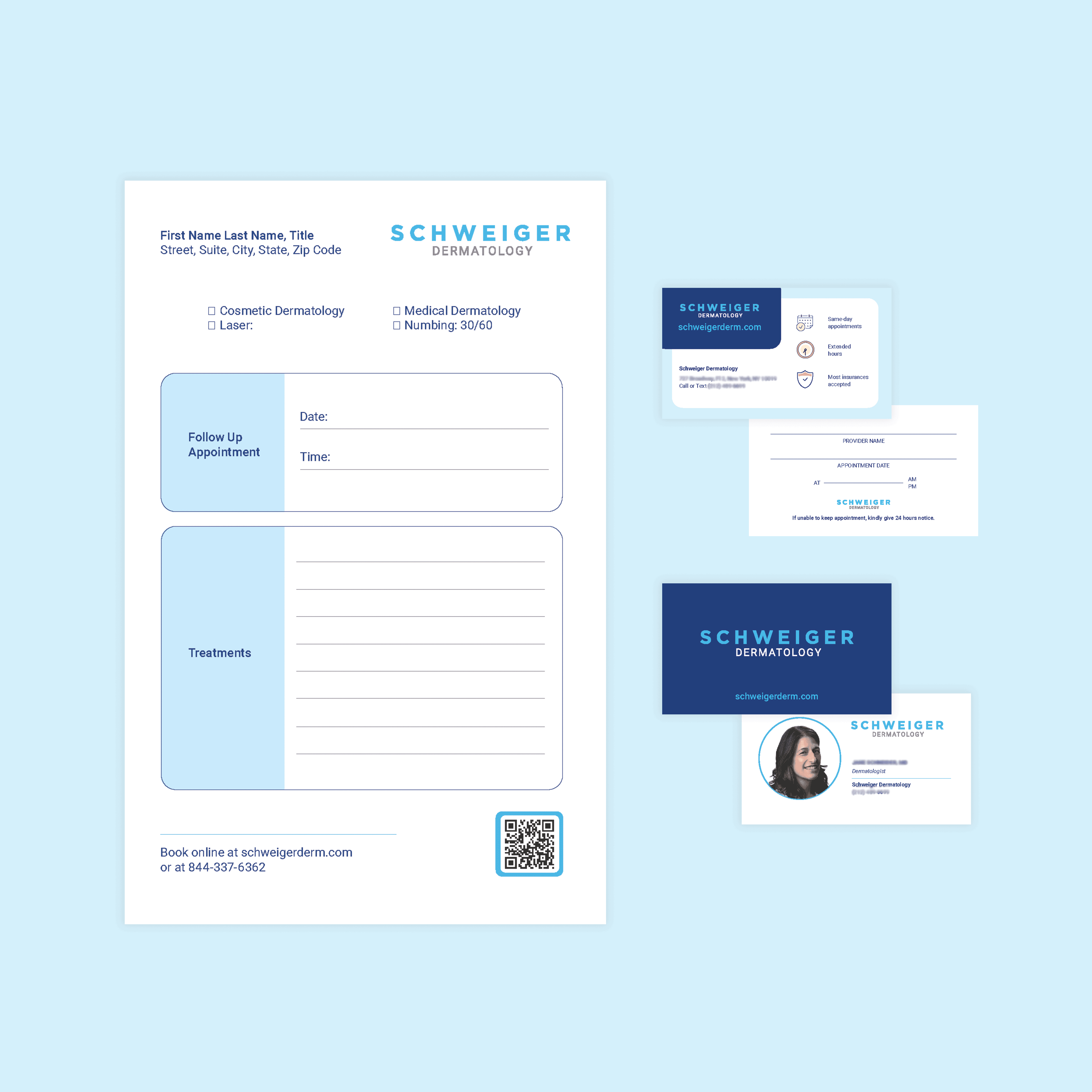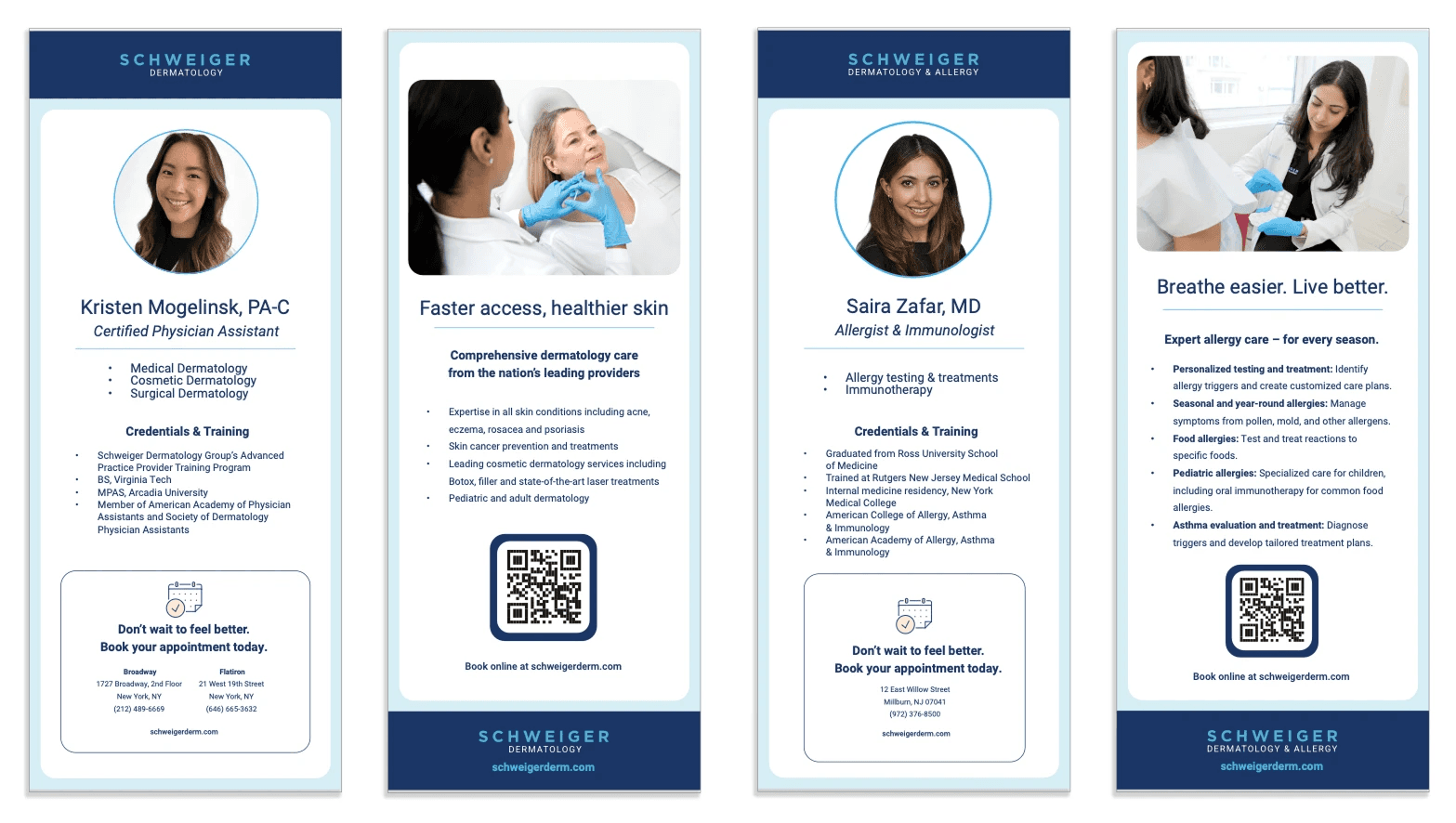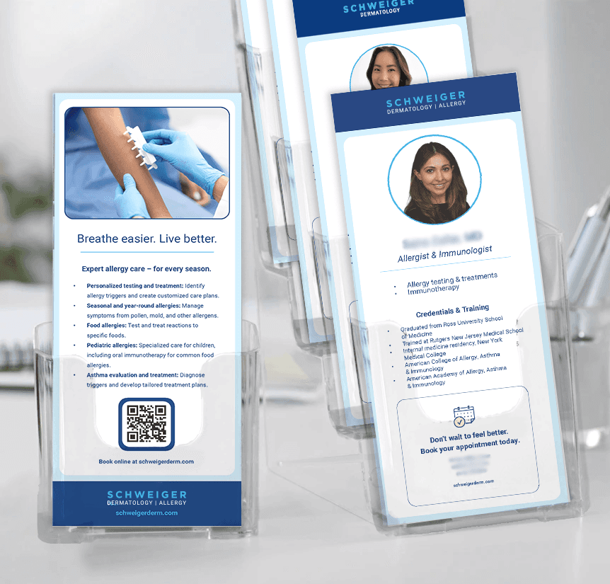 Previously, their branding focused mainly on their dermatology services. Working with the brand manager and external agency, the material was created to encapsulate the full range of services and offerings.